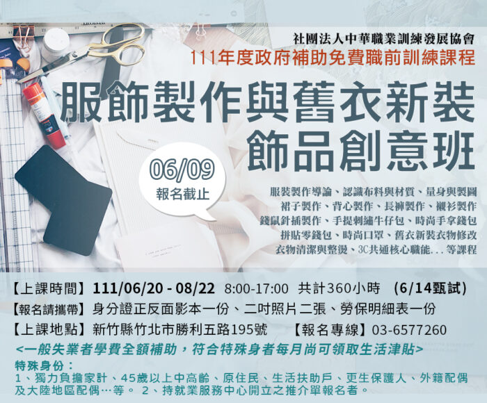 111年服飾製作與舊衣新裝飾品創意班-招生中